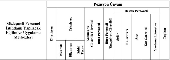 Diyetisyen, elektrik, bilgisayar ve sıhhi tesisat teknisyenleri, koruma ve güvenlik görevlisi, büro personeli, şoför, kaloriferci, aşçı, kat görevlisi ve yardımcı hizmetlerde çalışabilecek kişiler, 2 Mart ila 6 Mart tarihlerinde başvuru yapabilecek.