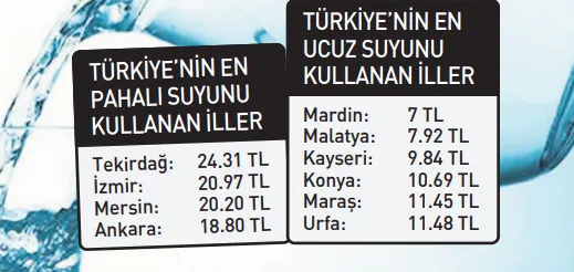 TÜRKİYE'NİN EN PAHALI SUYUNU KULLANAN İLLER