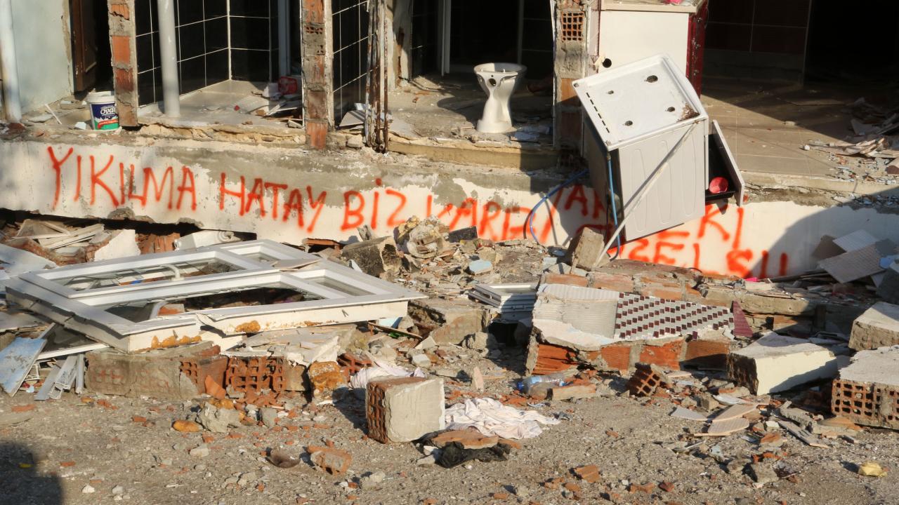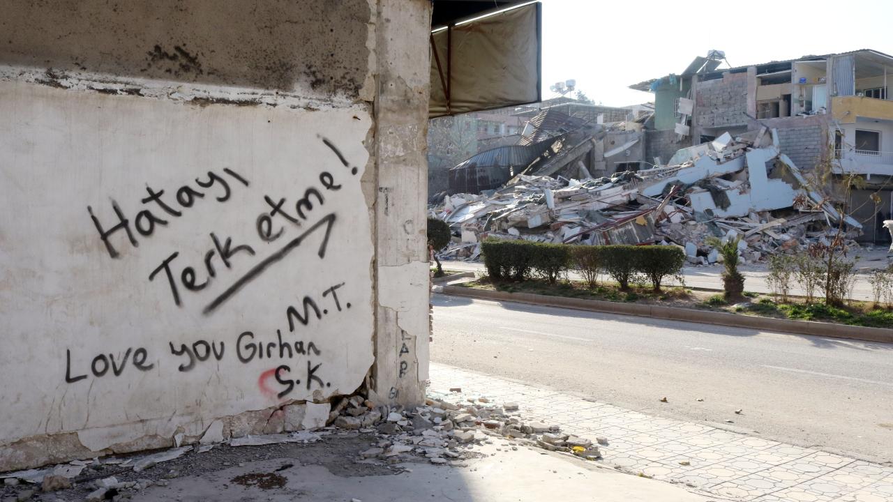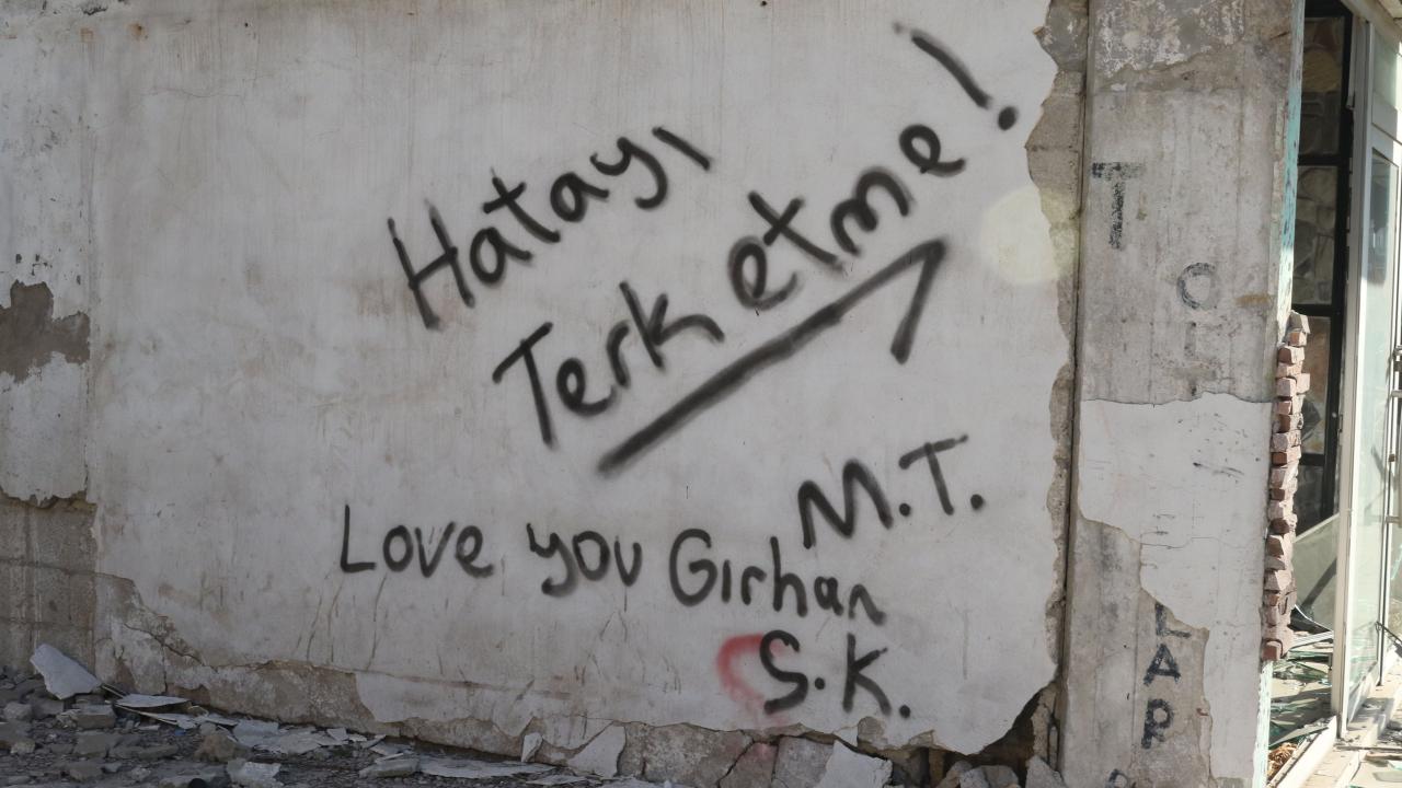 Sprey boyayla duvarlara yazılan `Hatay`ı terk etme`, `Geri döneceğiz Hatay`, Gitmedik, buradayız`, `Seninleyiz Hatay` gibi yazılar, umut ışığı oldu.