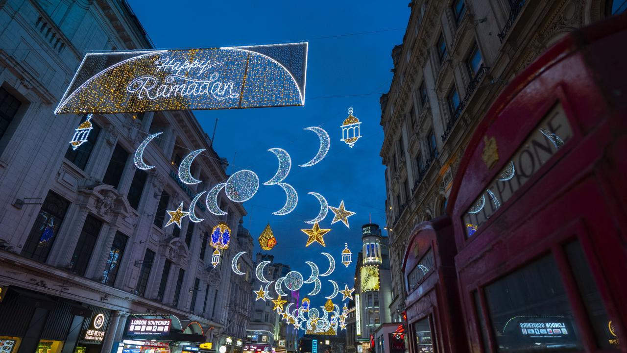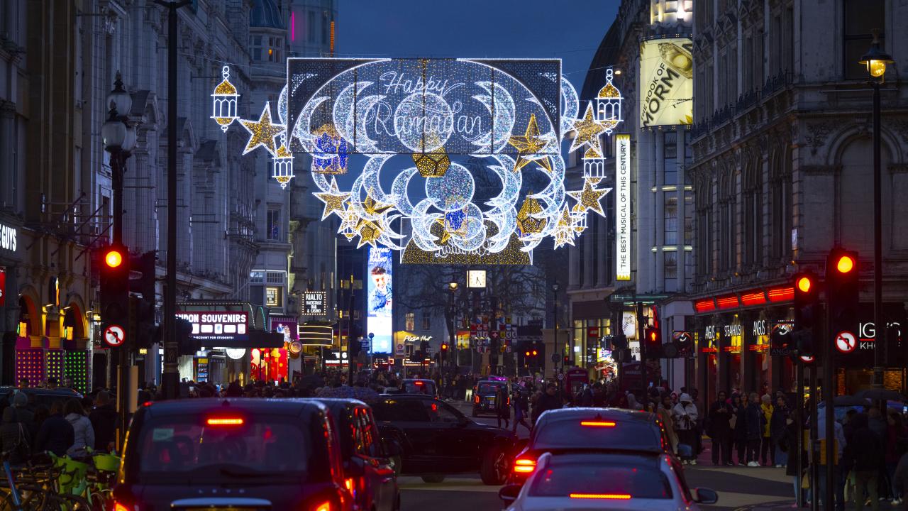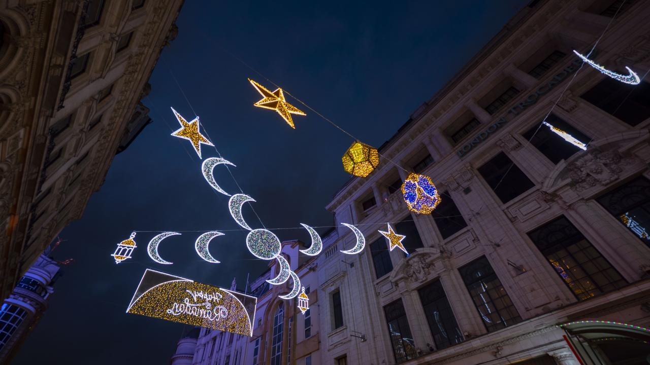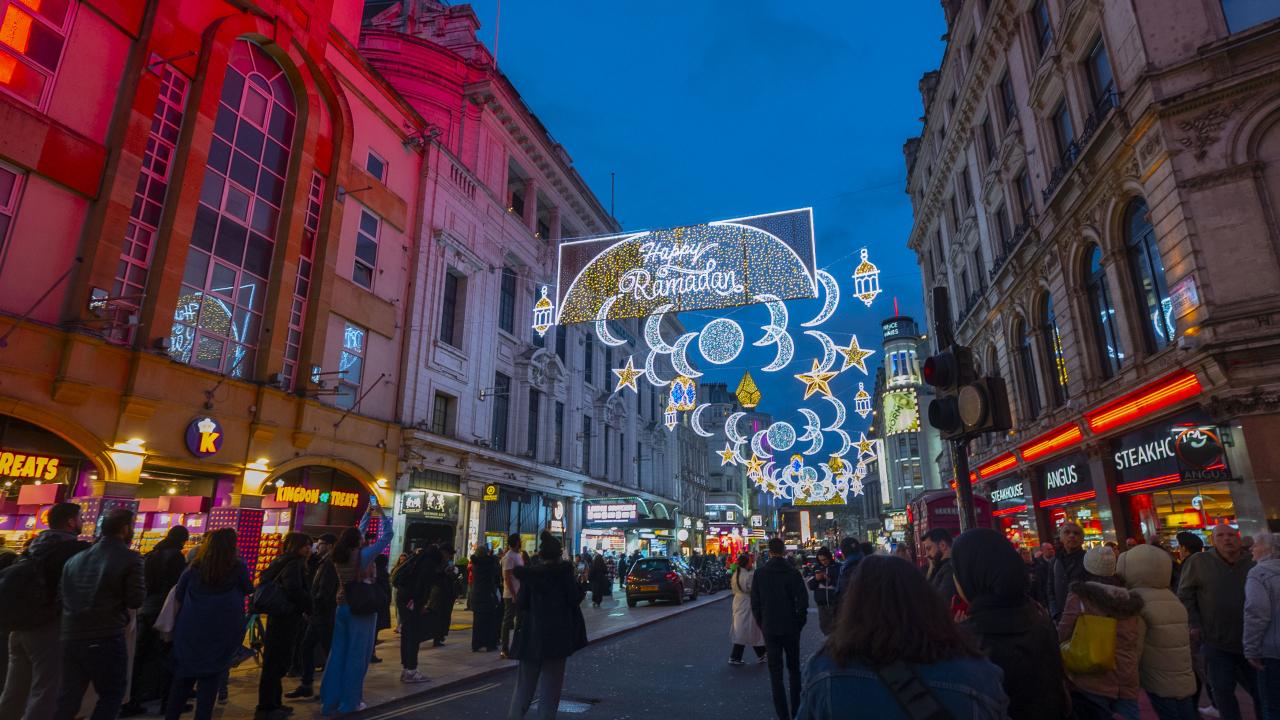 Başkentin merkezinde yer alan ünlü Leicester Meydanı yakınlarındaki Coventry Caddesi, 30 bin ampulden oluşan ramazan ışıkları konseptiyle aydınlatıldı.